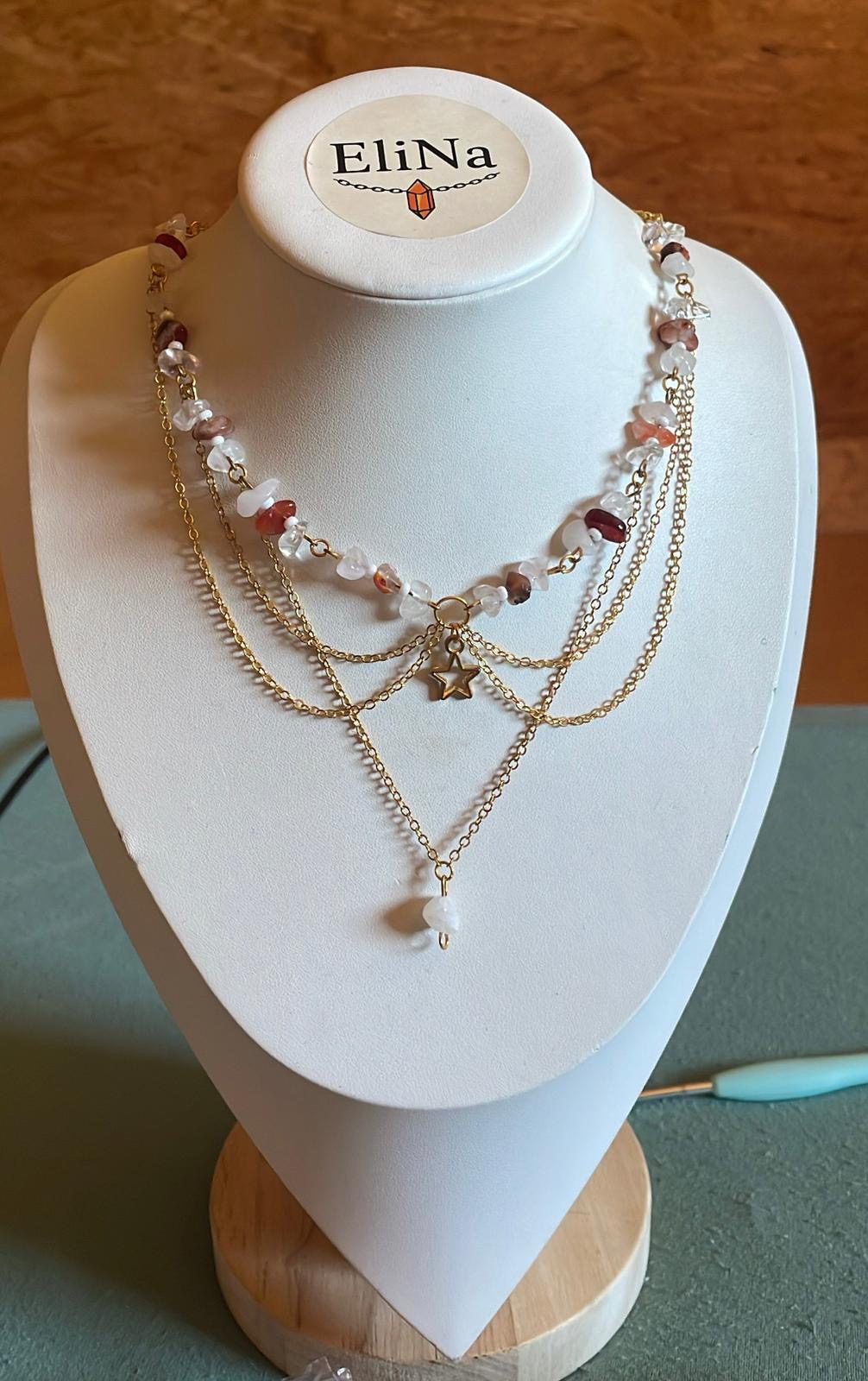 ➡️ Vyrábím převážně z bižuterie – kombinuji různé řetízky, korálky a ozdobné přívěsky. Každý kousek tvořím ručně s pečlivostí a citem pro detail.